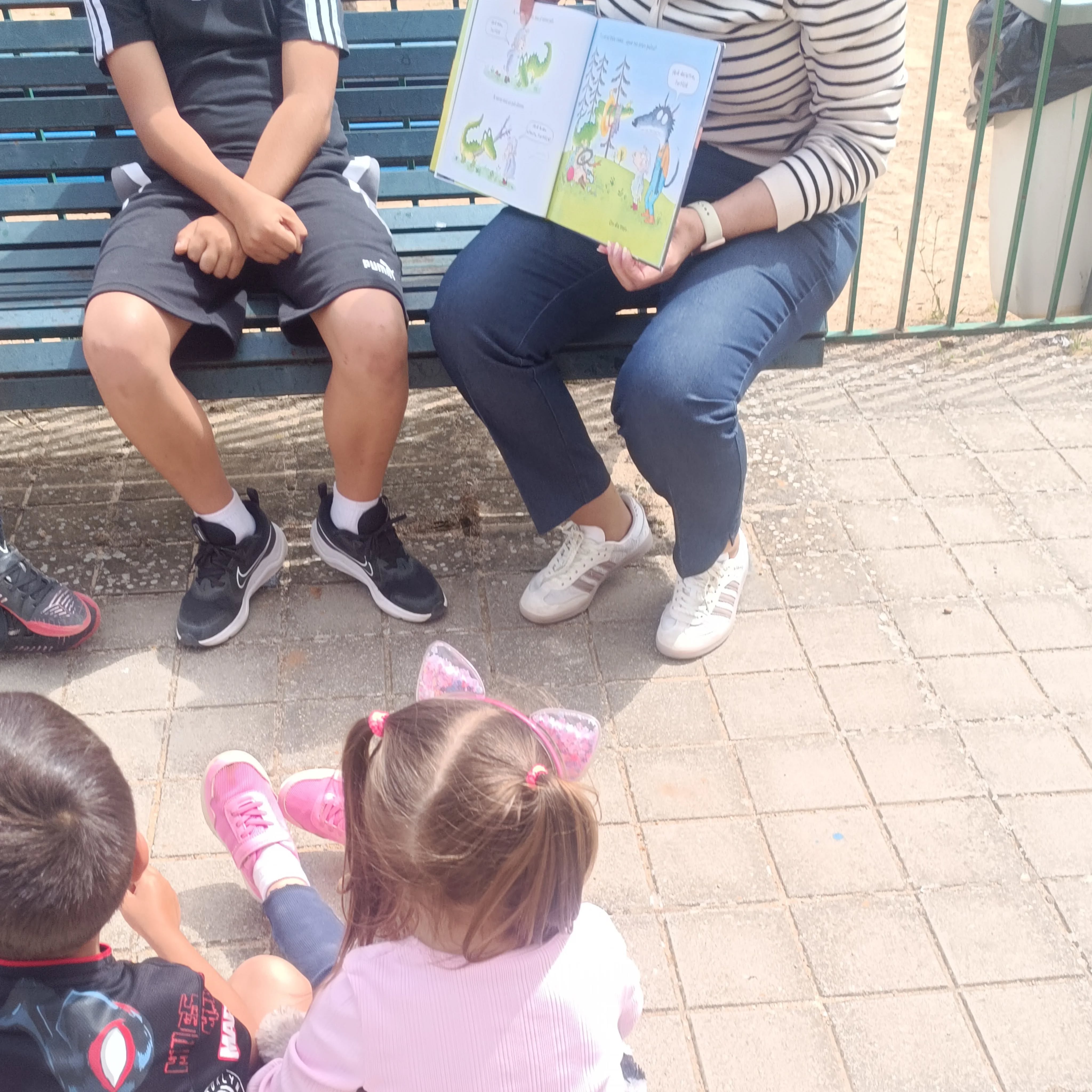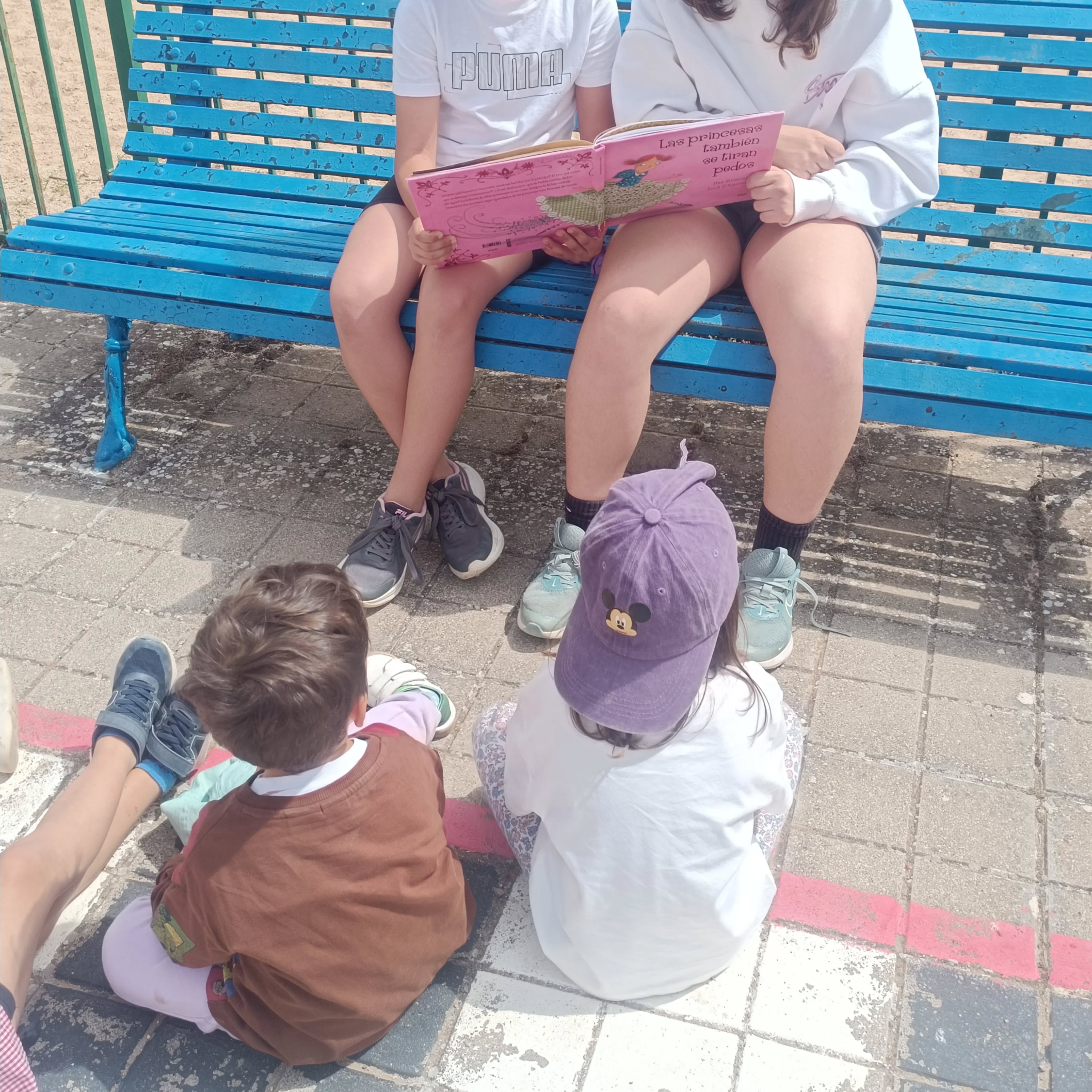 Uno de los momentos más especiales lo protagonizan los alumnos de 5º de Primaria, que, con entusiasmo y dedicación, realizan un cuentacuentos para el alumnado de Educación Infantil. A través de sus historias, logran captar la atención de los más pequeños, transportándolos a mundos llenos de imaginación y sembrando en ellos el gusto por los libros desde edades tempranas.